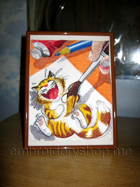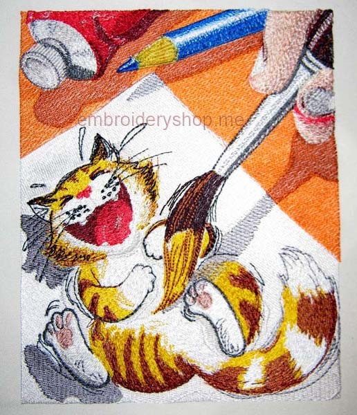 Cat Artist Smile Machine Embroidery Designs size 146*182mm