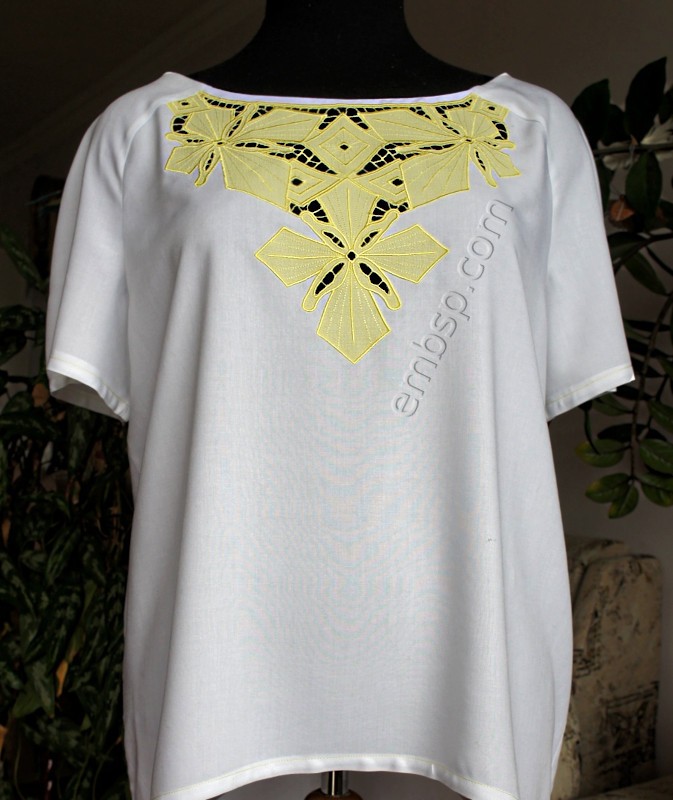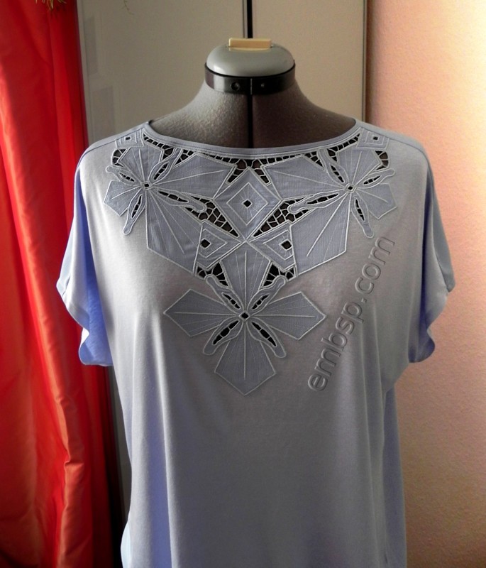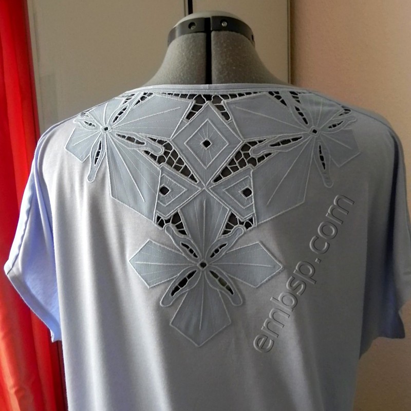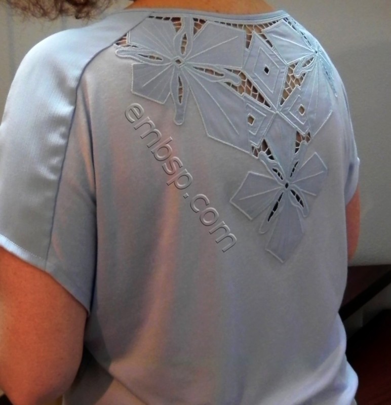 Designs for a front and for a back are included in the package. Design for the front consists of two parts. Design for the back also consists of two parts. The required size of the hoop is not less than 174*298 mm.