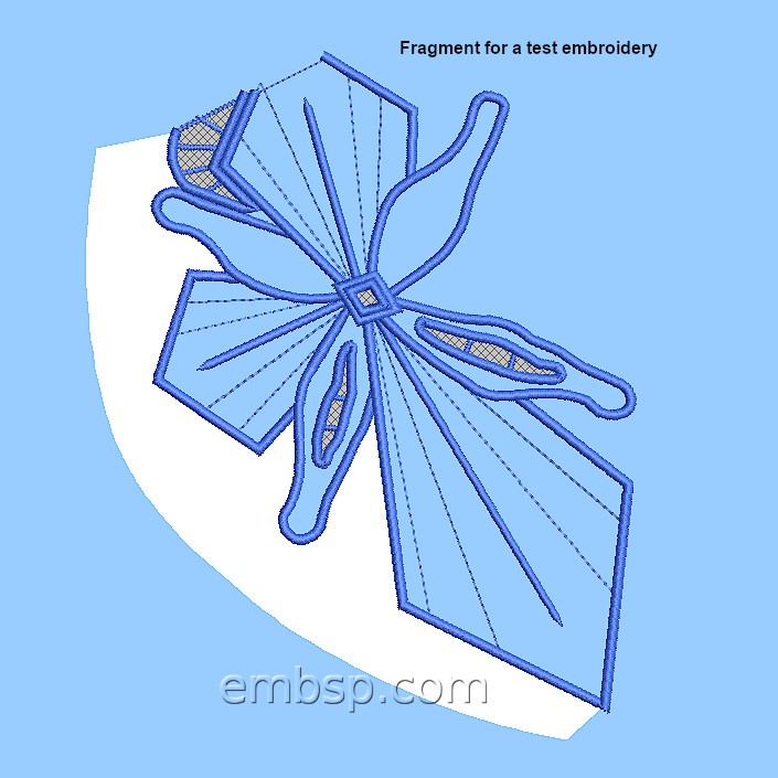 The fragment for a test embroidery has the size of 109*149 mm (4.28*5.83 inches), 5 stops (color changes), 8504 stitches