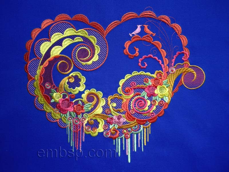 Machine Embroidery Designs Denim Heart size 170*252mm