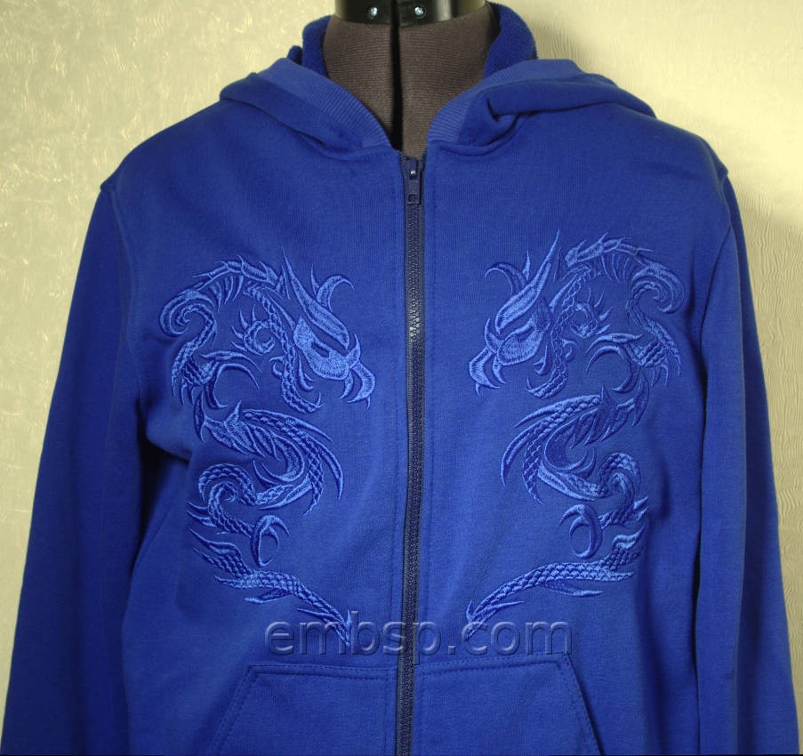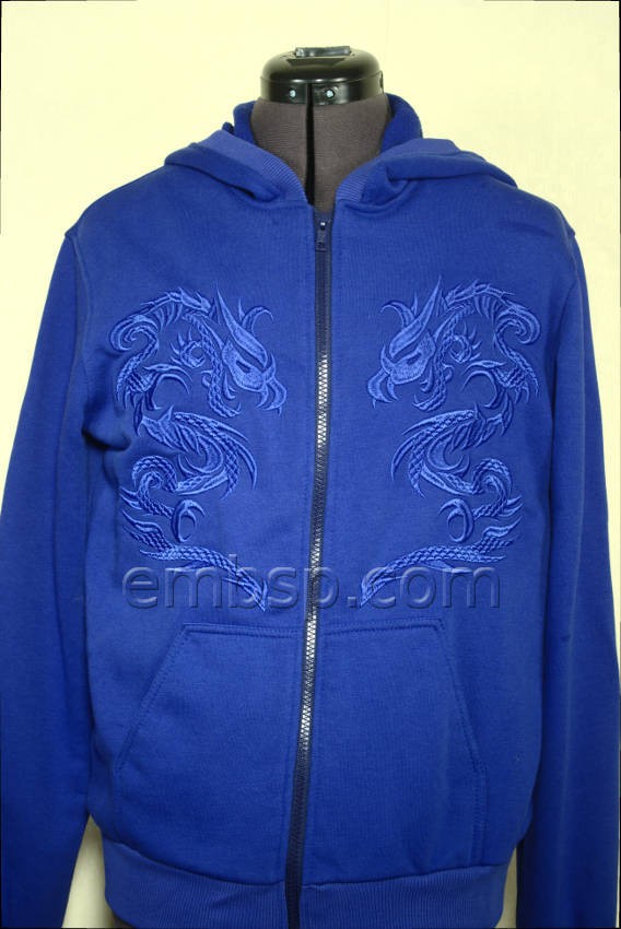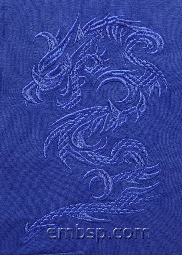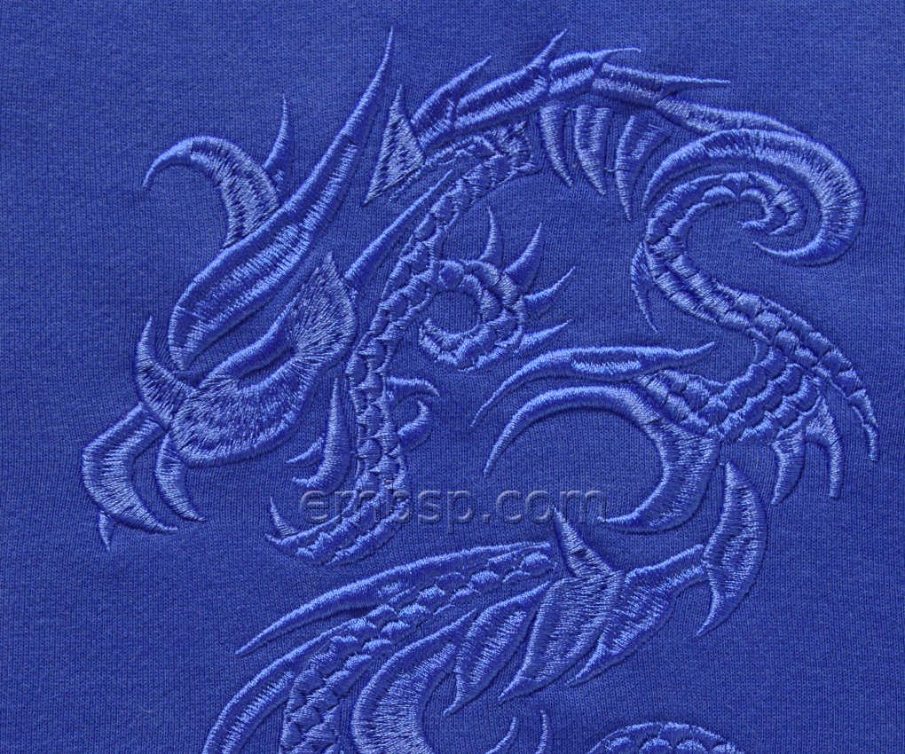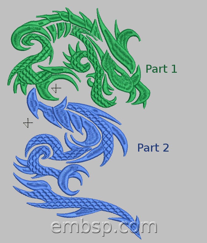 Embroider without trimming between the elements. On the finished embroidery connections between elements within the dragon are not cut off.