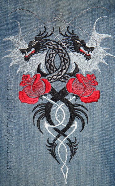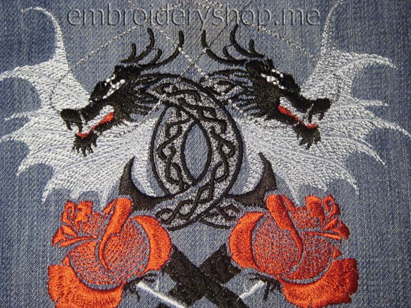 Dragons with roses Machine Embroidery Designs Size 149*223mm