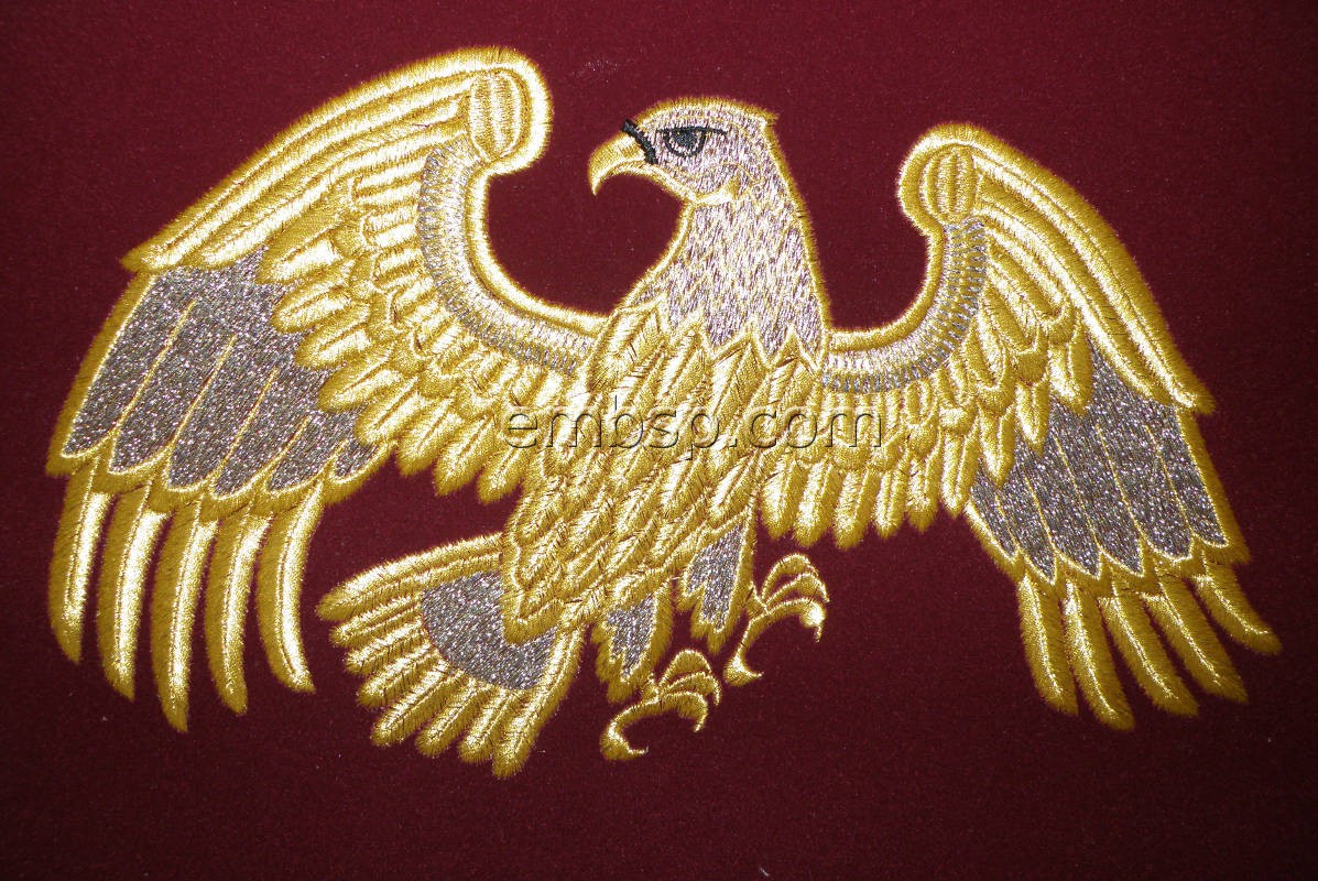 Embroidery, which is shown in the photo is made with thread metallic – silver and gold on velvet.