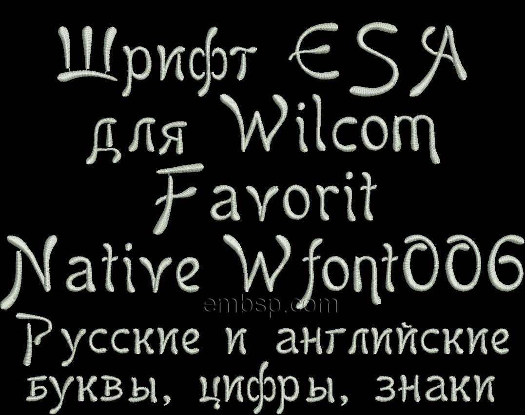 This ESA font is intended for use with Wilcom ES 2006 version and up. This file is not suitable for embroidery, used only for work in Wilcom digitizing software.