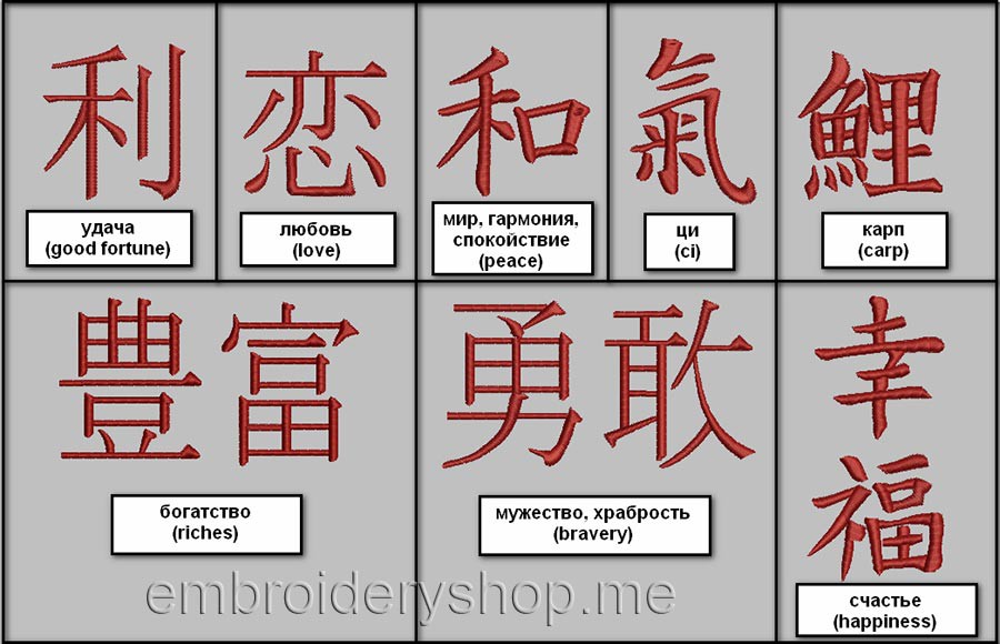 Favorable hieroglyphs Machine Embroidery Designs (8 designs)