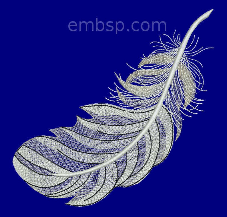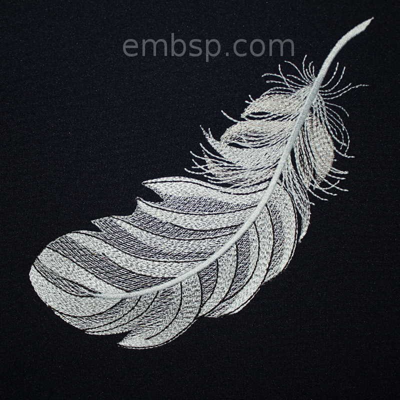The design is available in two variants of location in the hoop. In one embodiment, the feather is located obliquely relative to the vertical line, in another embodiment it is positioned vertically. Due to the different locations receive different design size, although the feather is the same.