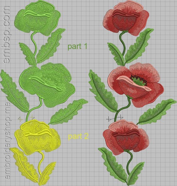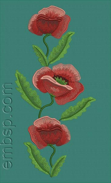 Flowers Poppies Machine Embroidery Designs large hoop size 187*267mm