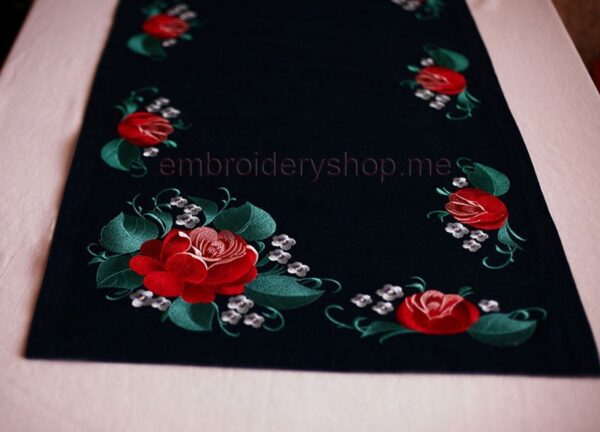 Flowers Runner Machine Embroidery Designs split version for machines with 140×200 mm hoops is supplied.
