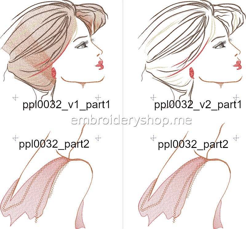 In addition to the full versions, the divided versions for the 196*196 mm (7.72*7.71 inches) hoop are supplied.