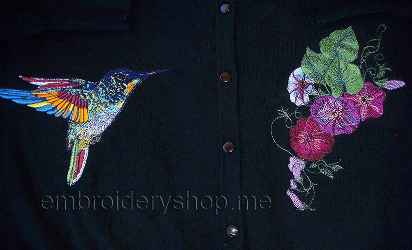 Hummingbird and Morning glory Machine Embroidery Designs size 313*149мм
