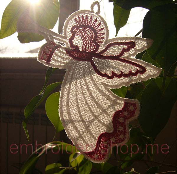 Lace Angel on chiffon Machine Embroidery Designs Size 117*122mm