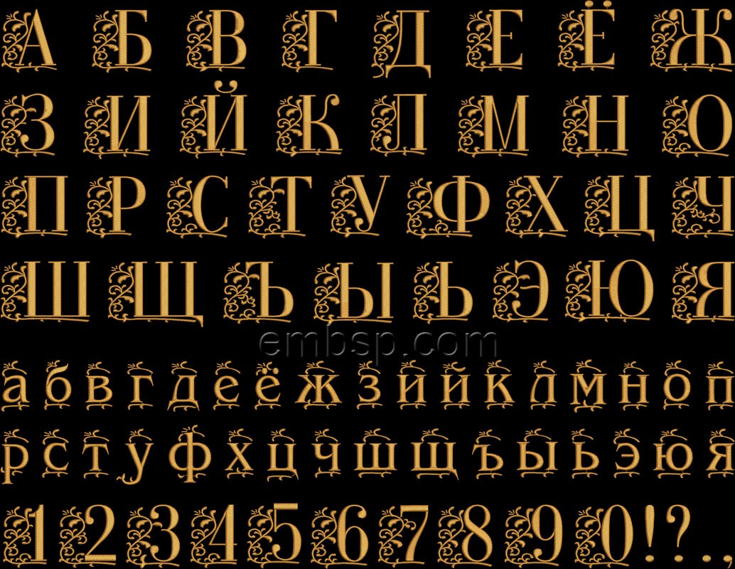 A font for embroidery. The set consists of 80 designs. Supplied in PES, HUS, DST, XXX, JEF, VIP, VP3
