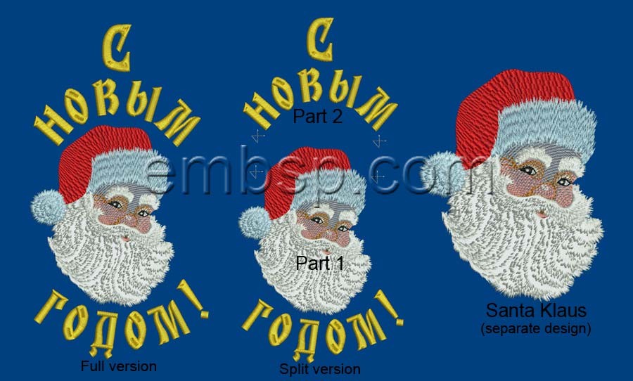 2. Design Santa Claus + inscription, divided into two parts for machines with 129х168 mm (5,06*6,61 inches) hoops
