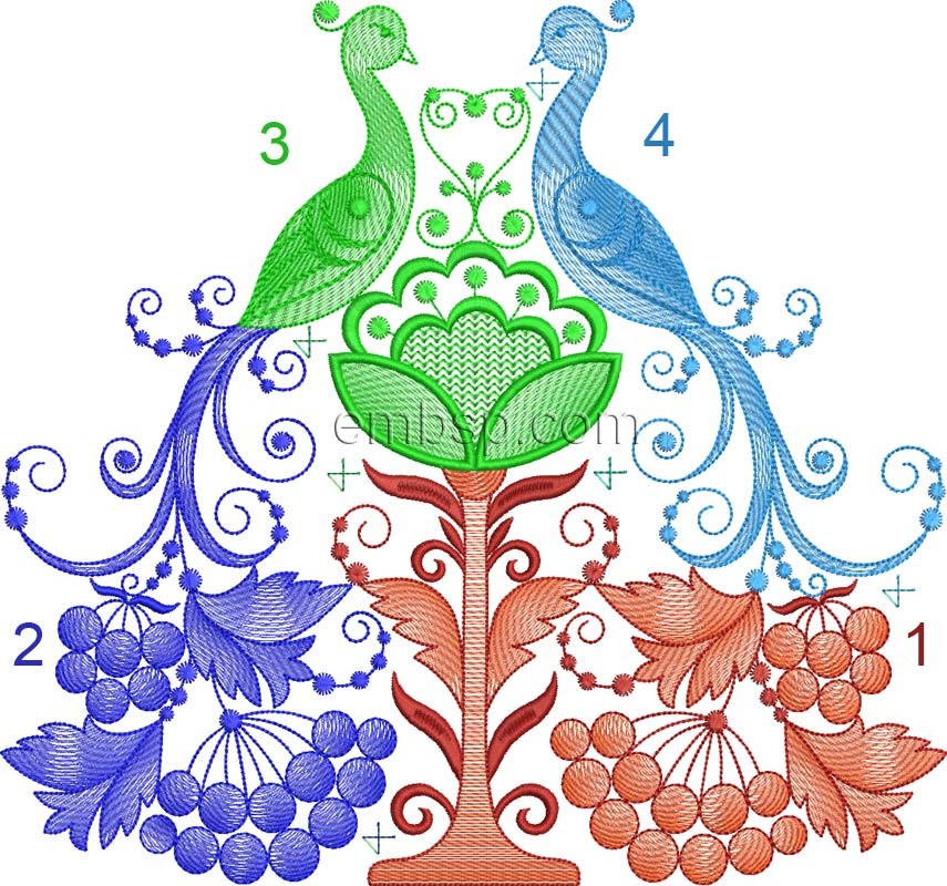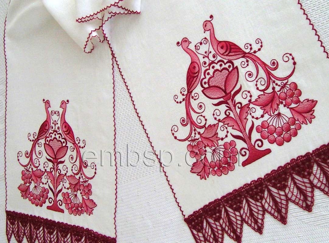 Towel with birds Machine Embroidery Designs Size 140*200mm (+4 parts)